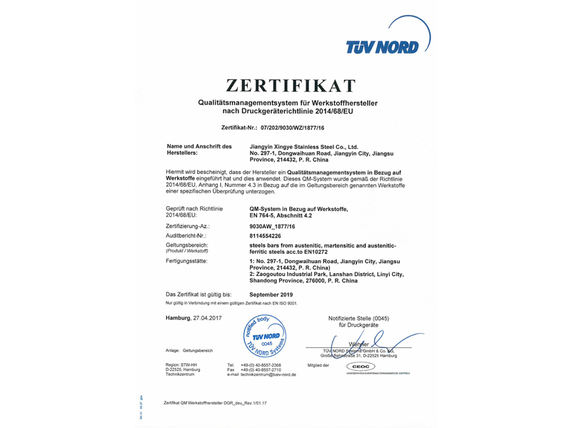 本公司按照ISO9001:2015質(zhì)量管理體系的標(biāo)準(zhǔn)要求,建立了質(zhì)量管理體系,并通過(guò)TUV認(rèn)證